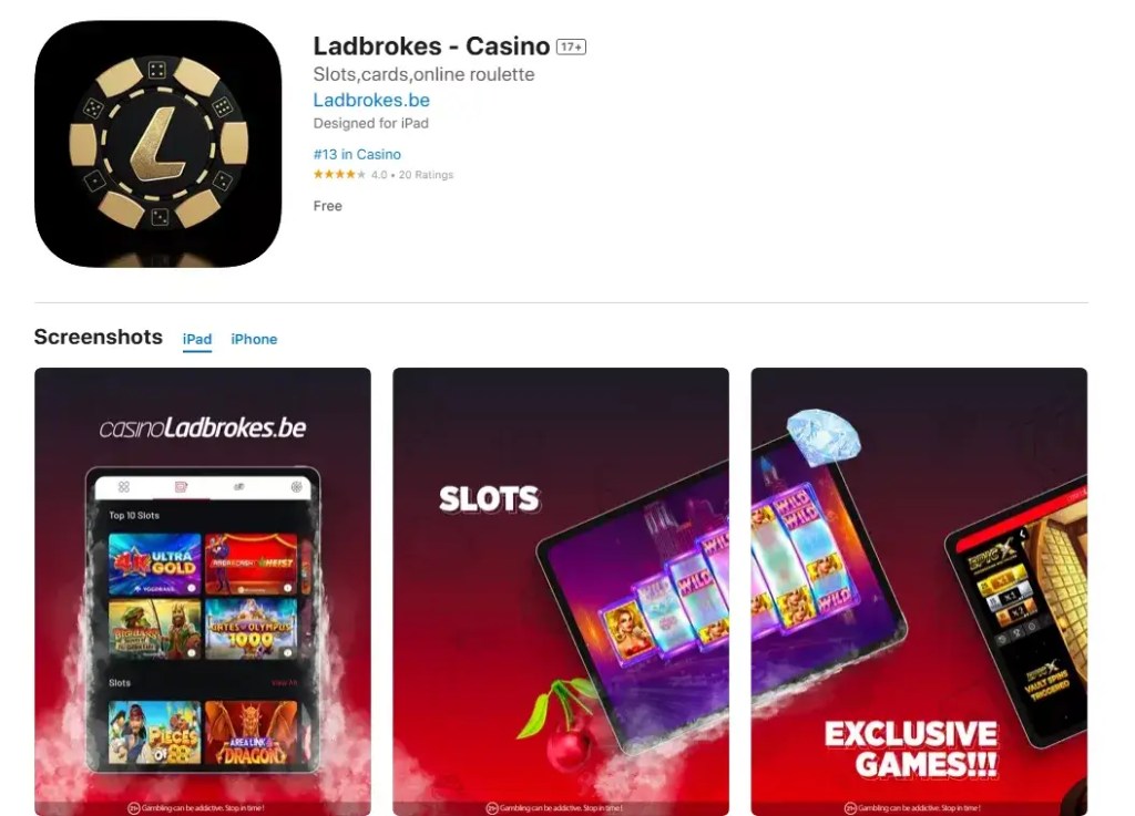 Téléchargez app mobile Ladbrokes Casino Belgique depuis l’App Store ou Google Play en recherchant Ladbrokes.be Casino et installez l’application casino mobile Ladbrokes Belgique en quelques secondes.